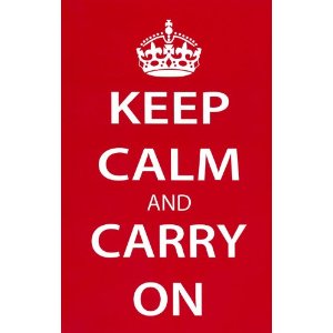 I think “Keep Calm and Carry On” may need to become my new motto. I certainly need to “calm the hell down” as has been suggested by those who shall remain nameless. And we must always “carry on”. Even in our darkest hours; we must carry on! It seems that I’ve been “carrying-on” for sometime now but “to carry on” means something else entirely I’m told.