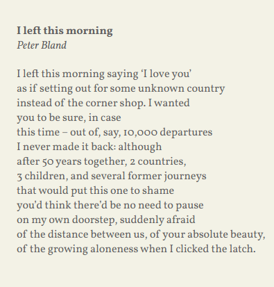 A dear friend shared this poem written by Peter Bland. It’s startling how much this poem speaks of our own life.
